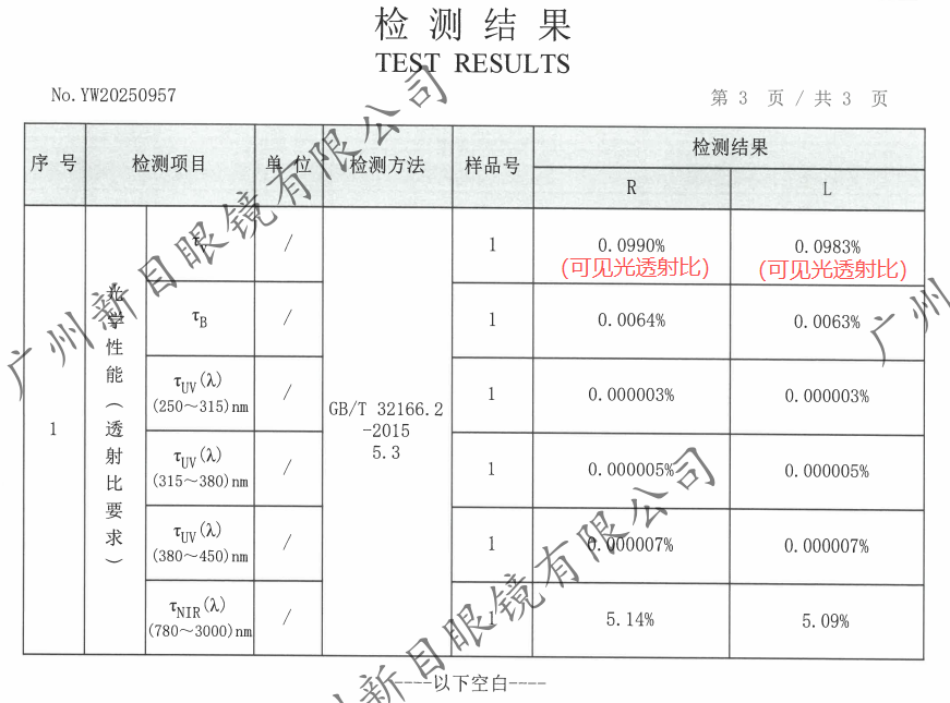 2.是否伤眼?:只要选择符合 GB38696-2020 标准的 IPL 防护镜,其通过 FPF(滤光片防护因数)控制有害波段透过率(低于安全阈值),仅允许安全可见光透过,不会对眼睛造成光辐射伤害。反之,若使用非 IPL 专用防护镜(如普通太阳镜、激光束防护镜),则可能因未过滤关键有害波段导致眼损伤。