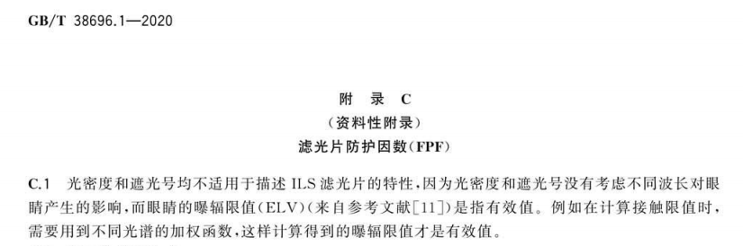 标准与光辐射特性完全不同:前者执行 GB-30863-2014,后者执行 GB38696-2020,两者针对的光辐射类型、伤害机制无兼容性。